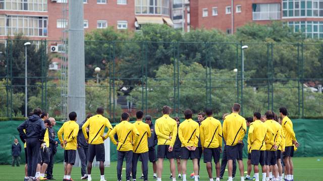 Szerdán Prágából utazott haza, és aznap már nem edzett a Barcelona kerete, ám csütörtökön délelőtt már tartott tréninget Josep Guardiola, aki közel a teljes csapatával számolhatott. A rehabilitációját végző Pedro ugyan a társaitól elválasztva dolgozott, mindenki más azonban teljes értékű munkát végzett a Ciutat Esportiva 1-es pályáján. Így összesen 19 futballista dolgozott a felnőtt keretből, rajtuk kívül a B keretből tartós felnőtt kerettagságot nyerő Isaac Cuenca volt még jelen az esős időben. A felhős, esős idő ha másra nem, arra biztosan jó volt, hogy a játékosok szokják a bilbaói körülményeket, mert az évnek ebben a szakában Baszkföldön jellemzően ilyen az időjárás.