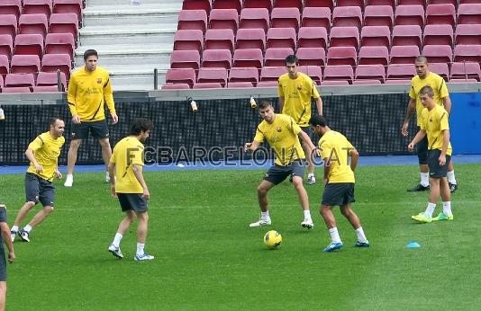 A csapatnak a pénteki volt az utolsóelőtti edzése a szombat esti bajnokit megelőzően, ahol 18 játékos dolgozott a felnőtt együttesből, rajtuk kívül jelen volt Isaac Cuenca is a B csapatból, aki várhatóan be fog kerülni a Mallorca elleni keretbe is. A sérültek közül Pedro és Afellay nem voltak ott a tréningen, Alexis Sánchez azonban ismét a csapattal dolgozhatott a foglalkozás bizonyos szakaszaiban.